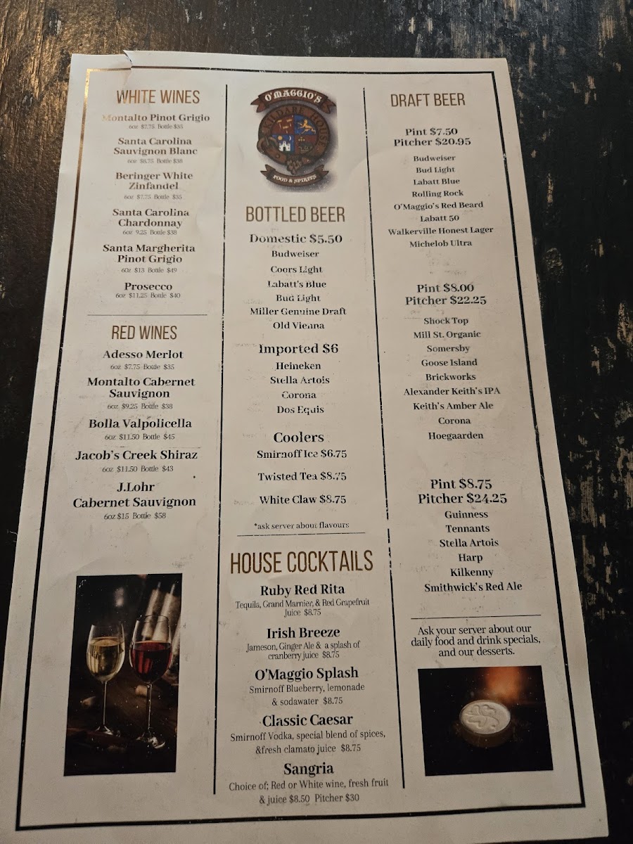 Scott, one of the regulars, remarked about the consistent quality of the food and praised the staff for their attentive service. Staff members like Kristey are known for their friendly demeanor and keen attention to detail, ensuring you feel taken care of throughout your visit. Christina O'Brien's recount of how the staff deftly managed a difficult situation shows the level of professionalism and care you can expect, making O'Maggio's a safe and pleasant environment to unwind.
